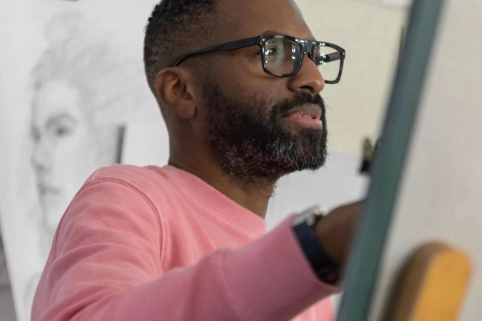 The show documents Holder’s immersion into the life of the Gallery, exploring the collection, forming bonds with the people he has met, with a particular focus on the connection he made with eight individuals whose portraits he has drawn.